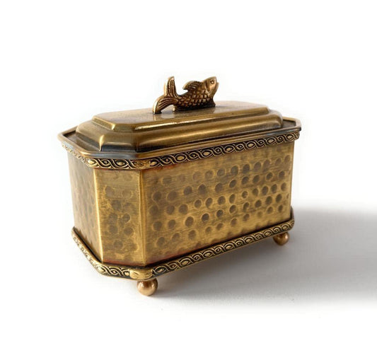 Portaoggetti in metallo dorato con pesce | Eleganza decorativa