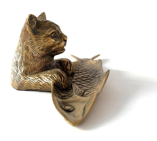 Vuota tasche in ottone a forma di gatto con pesce – Stile vintage