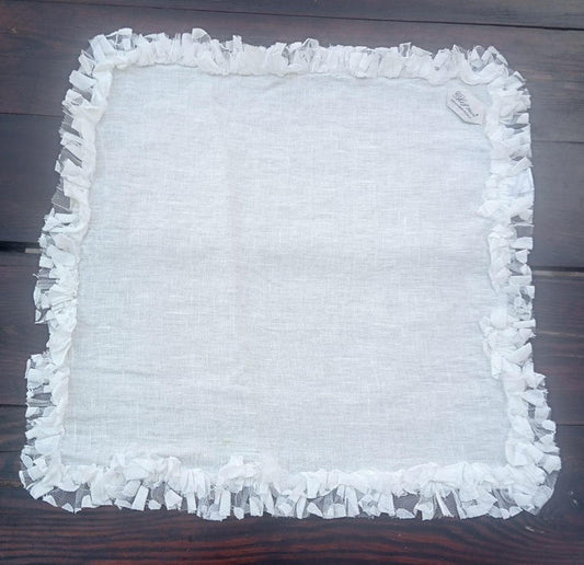 Set americano in lino cerato con tovagliolo e ricamo portafortuna