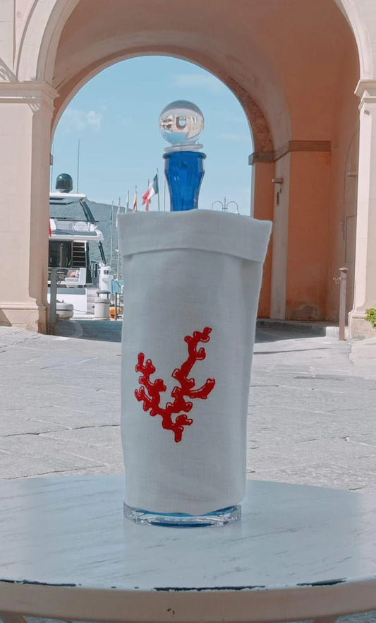 Copribottiglia in lino cerato con ricamo nautico – Handmade in Italy