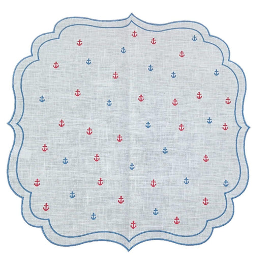 Americano e tovagliolo in lino cerato con ancore ricamate
