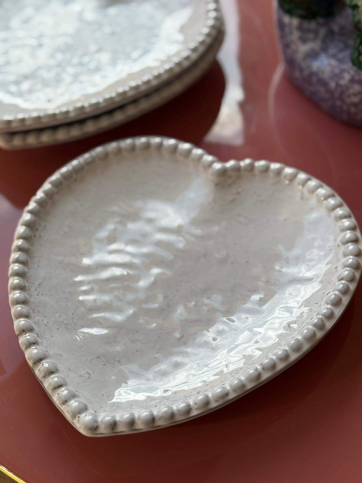 The Virginia Casa heart-shaped plate is a tribute to the love of the table and the beauty of handmade things. Crafted from Tuscan artisan ceramic , it captivates with its soft lines, raised edge, and delicate finishes that make each piece unique.