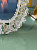 Oval frame with flowers and butterflies: timeless elegance for your memories.
